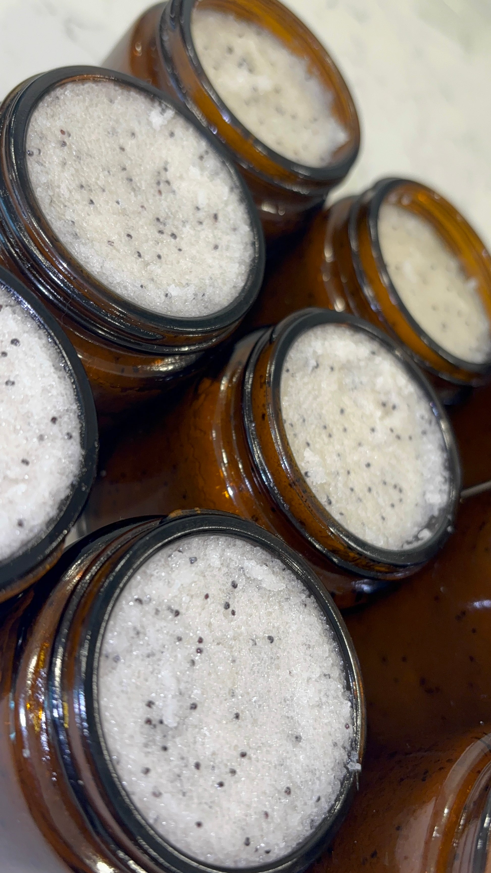 Sucrose (Sugar),Simmondsia Chinensis (Jojoba) Seed Oil, Mangifera Indica (Mango) Seed Butter, Stearic Acid, Glycerin, Phenoxyethanol and Caprylyl Glycol (Optiphen), Essential Oil Blend (Fragrance)